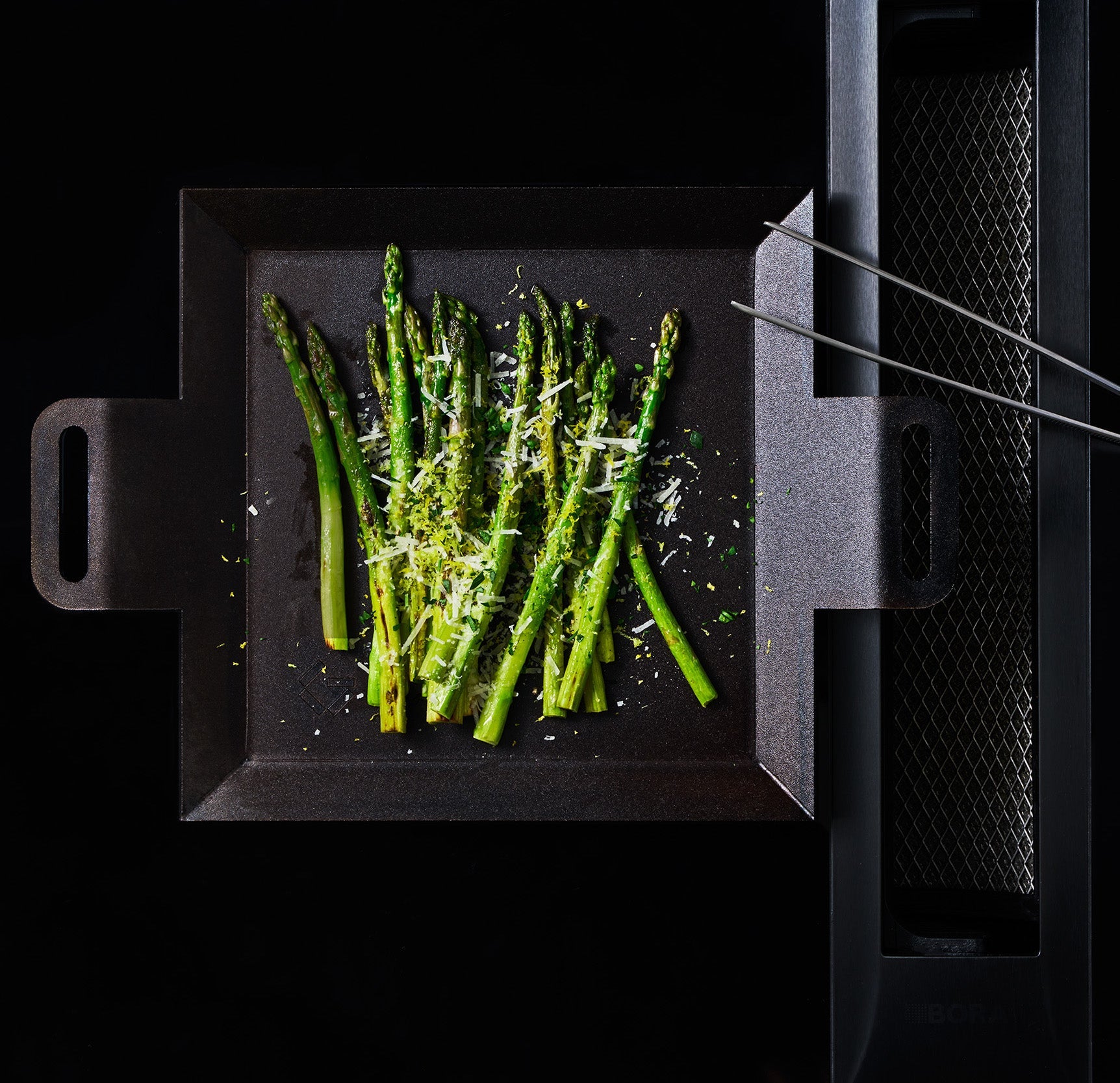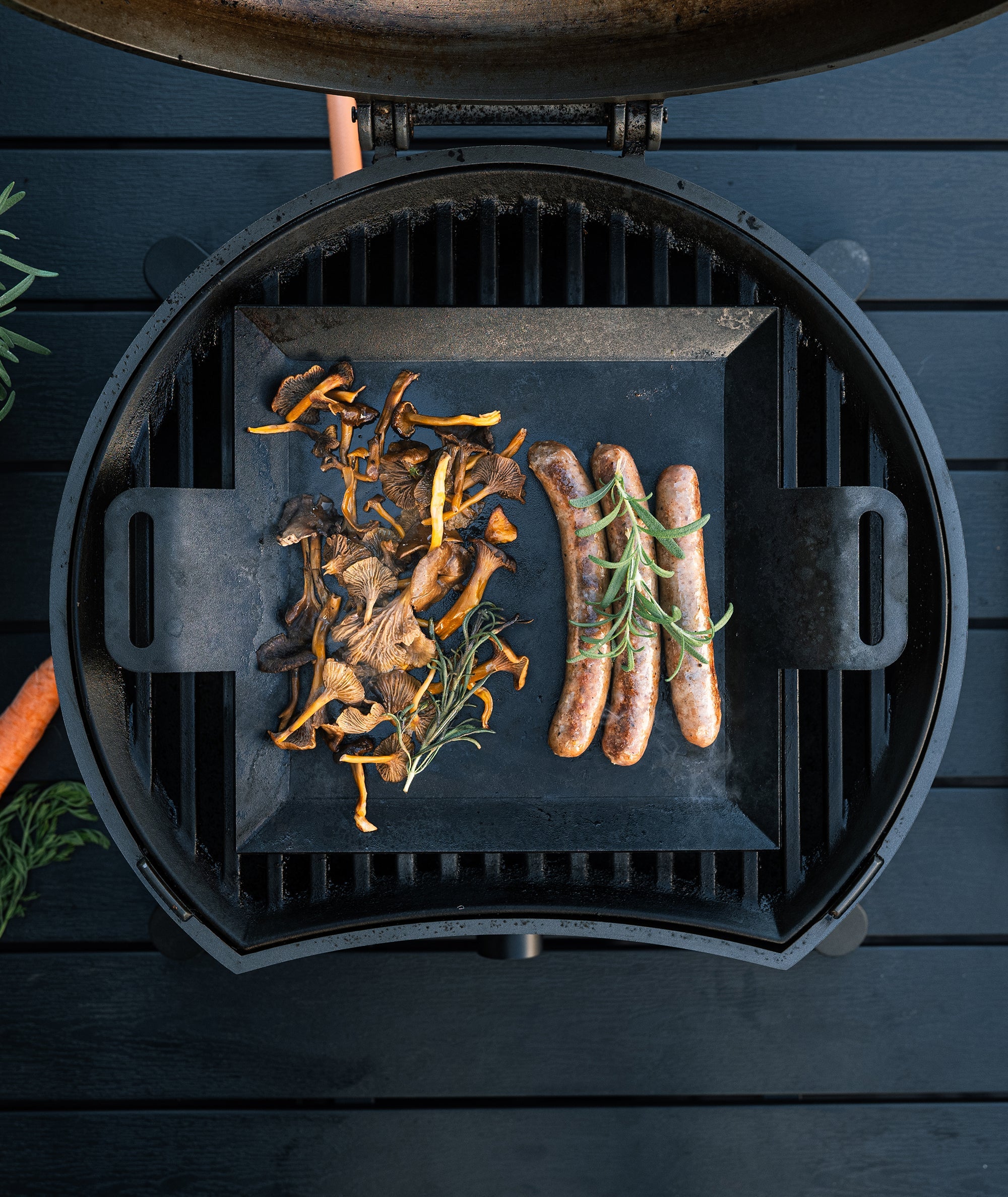 Wenn Kohlenstoffstahl nicht mit einer Ölschicht geschützt ist, wird er aufgrund seines hohen Eisengehalts anfällig für Feuchtigkeit und Rost. Durch das Auftragen von Einbrennen entsteht eine schützende Ölschicht, die die Oberfläche versiegelt und die "Poren" Ihrer Grillplatte füllt. Dies führt zur Bildung einer Patina, die der Oberfläche Antihaft-Eigenschaften verleiht und Rost verhindert. Es ist daher wichtig, Ihrer Grillplatte Einbrennen zu geben, wenn sie z.B. mit Essig oder einem groben Schwamm / Stahlwolle gereinigt wurde.