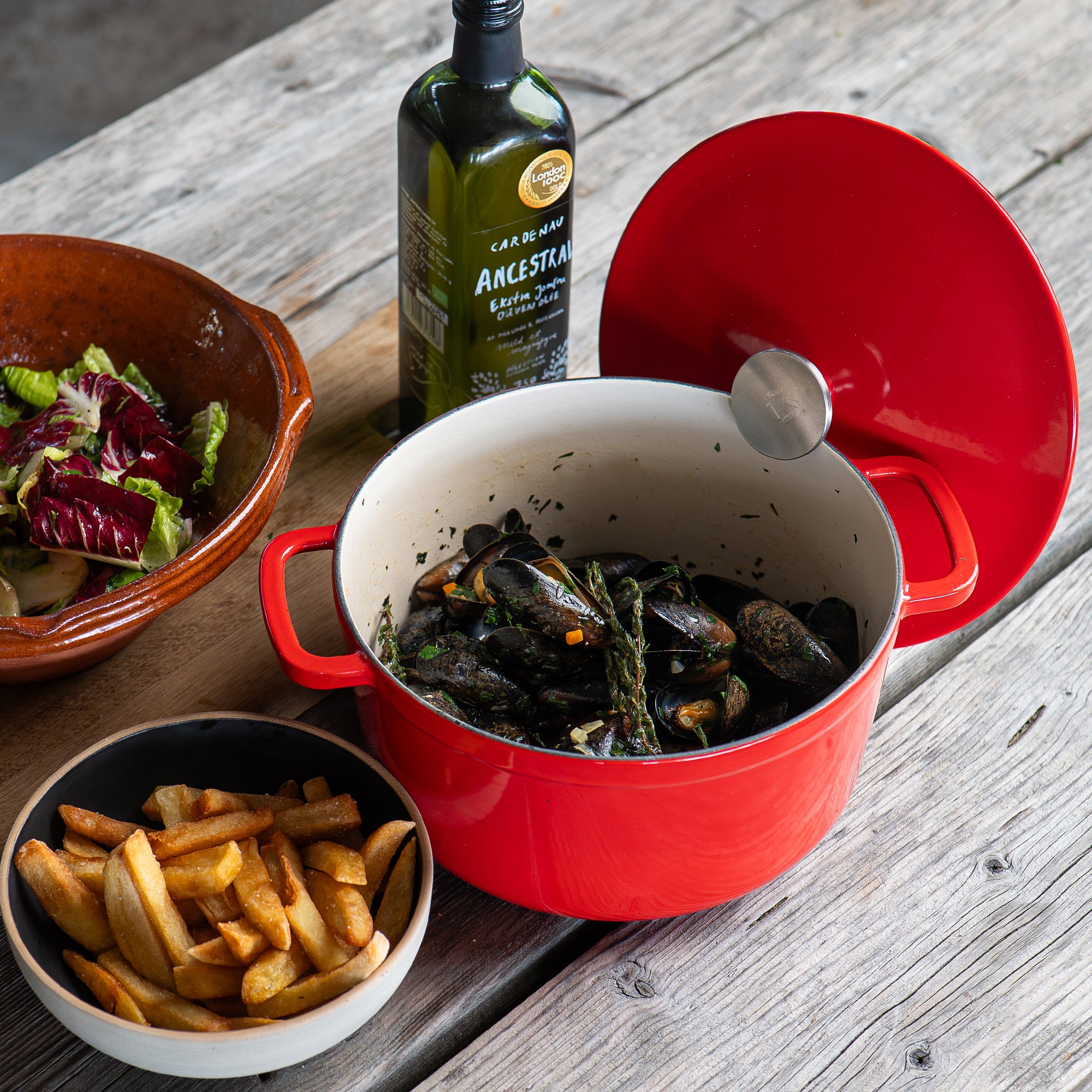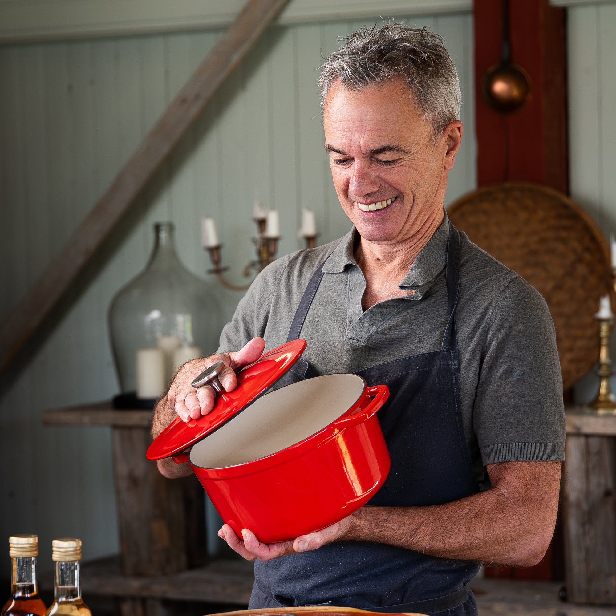 In Zusammenarbeit mit CARDENAU haben wir eine Farbe auf den Markt gebracht, die das Unternehmen, seine Herangehensweise an das Kochen und seine französischen Wurzeln repräsentiert. Das Ergebnis ist ein wunderschöner gusseiserner Topf in CARDENAU-Rot, der in limitierter Auflage erhältlich ist. Gusseisen-Kasserollen sind seit vielen Jahrzehnten ein fester Bestandteil sowohl in privaten als auch in professionellen Küchen. Aus diesem Grund haben wir eine emaillierte Gusseisen-Kasserolle entwickelt, die Tradition und Funktionalität in einem zeitlosen Küchenklassiker vereint. Schaffen Sie wunderbare kulinarische Erlebnisse mit schmackhaftem Boeuf Bourguignon, Hähnchen-Danoise oder frisch gebackenem, saftigem Kasserollenbrot. Dies ist der Topf, den Sie in die Mitte des Tisches stellen, wenn die Familie zusammenkommt – jetzt und in vielen Jahren.