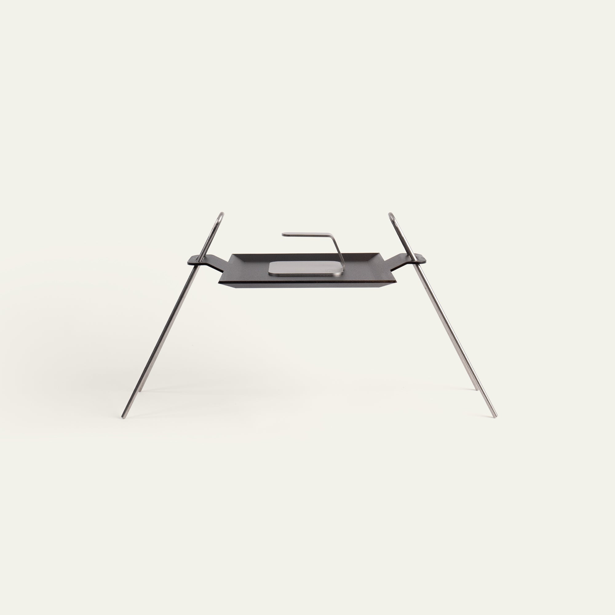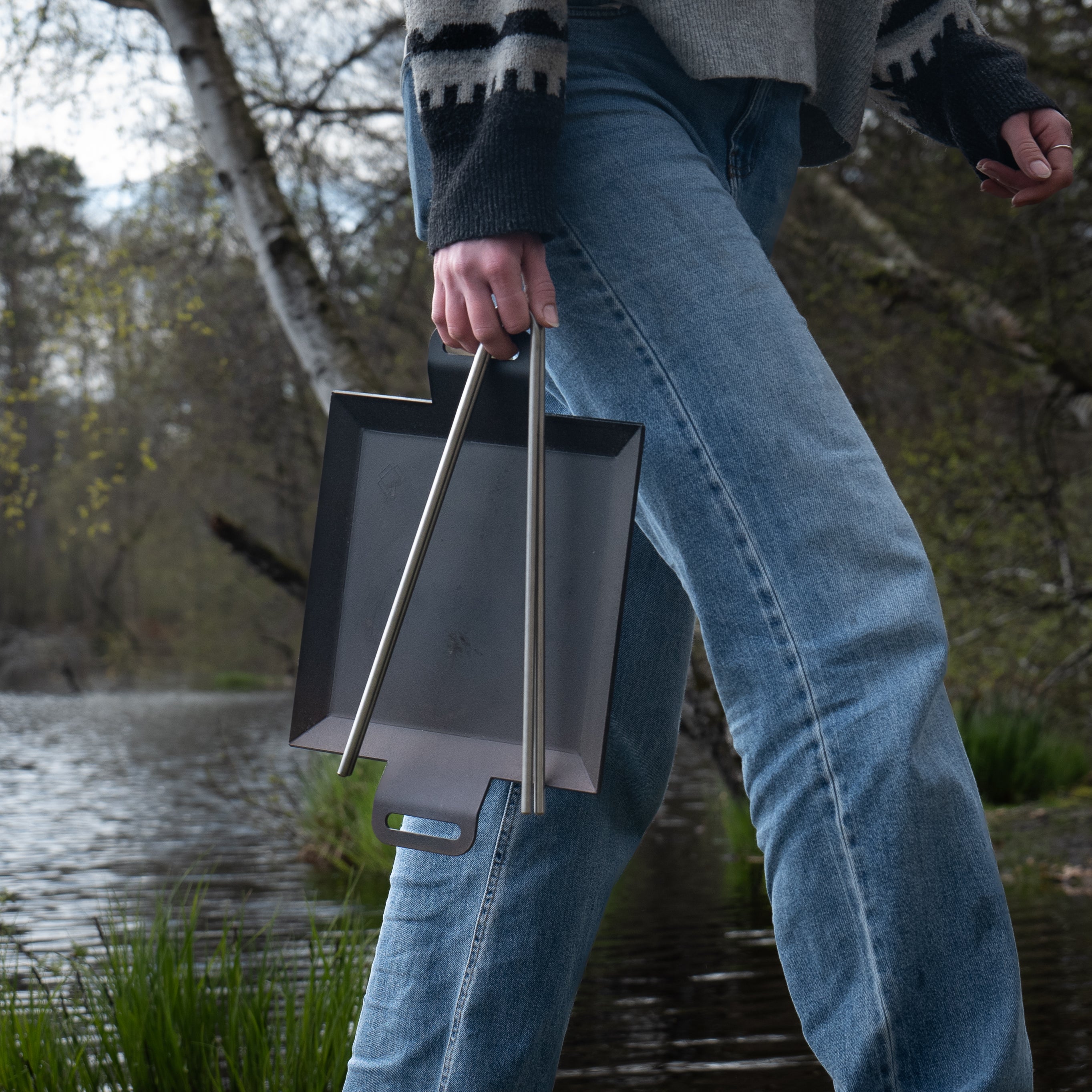 Im Gegensatz zu einer gerippten Grillpfanne bietet die Grillplatte eine maximale Kochfläche – und mit dem Smasher erhöhen Sie den Kontakt zwischen Ihren Zutaten und der Platte, um perfekte Ergebnisse zu erzielen, sei es bei der Zubereitung von Smash-Burgern, perfekt flachem Speck oder Toasts. Die Anwendung ist einfach: Stellen Sie den Feuerständer und die Grillplatte auf, entzünden Sie Ihr Feuer und kochen Sie direkt auf der Grillplatte – oder verwenden Sie die Grillplatte als mobilen Herd für Ihren Topf.