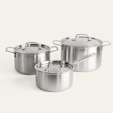Wir haben die besten Köche des Landes gefragt, wie die ultimative Serie von Töpfen und Pfannen aussehen soll – und hier ist sie. Mit professionellen Details wie einem Ausgießrand und einer Auswahl an Materialien, die in den besten Restaurants der Welt verwendet werden. Das Set enthält einen 7-Liter-Topf und einen 4-Liter-Topf. Mit diesen zwei funktionalen Größen sind Sie bestens ausgestattet, egal ob Sie Brühe oder Eintopf zubereiten.